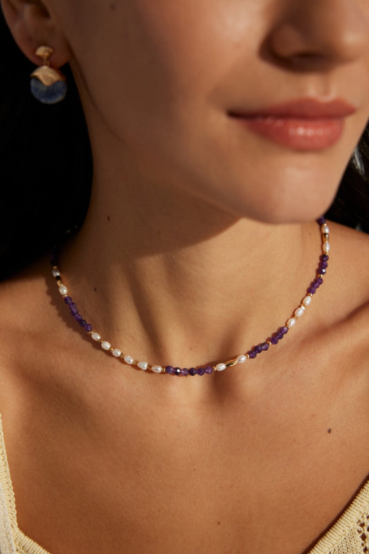 Vintage Natural Pearl & Amethyst Necklace - with S925 Sterling Silver