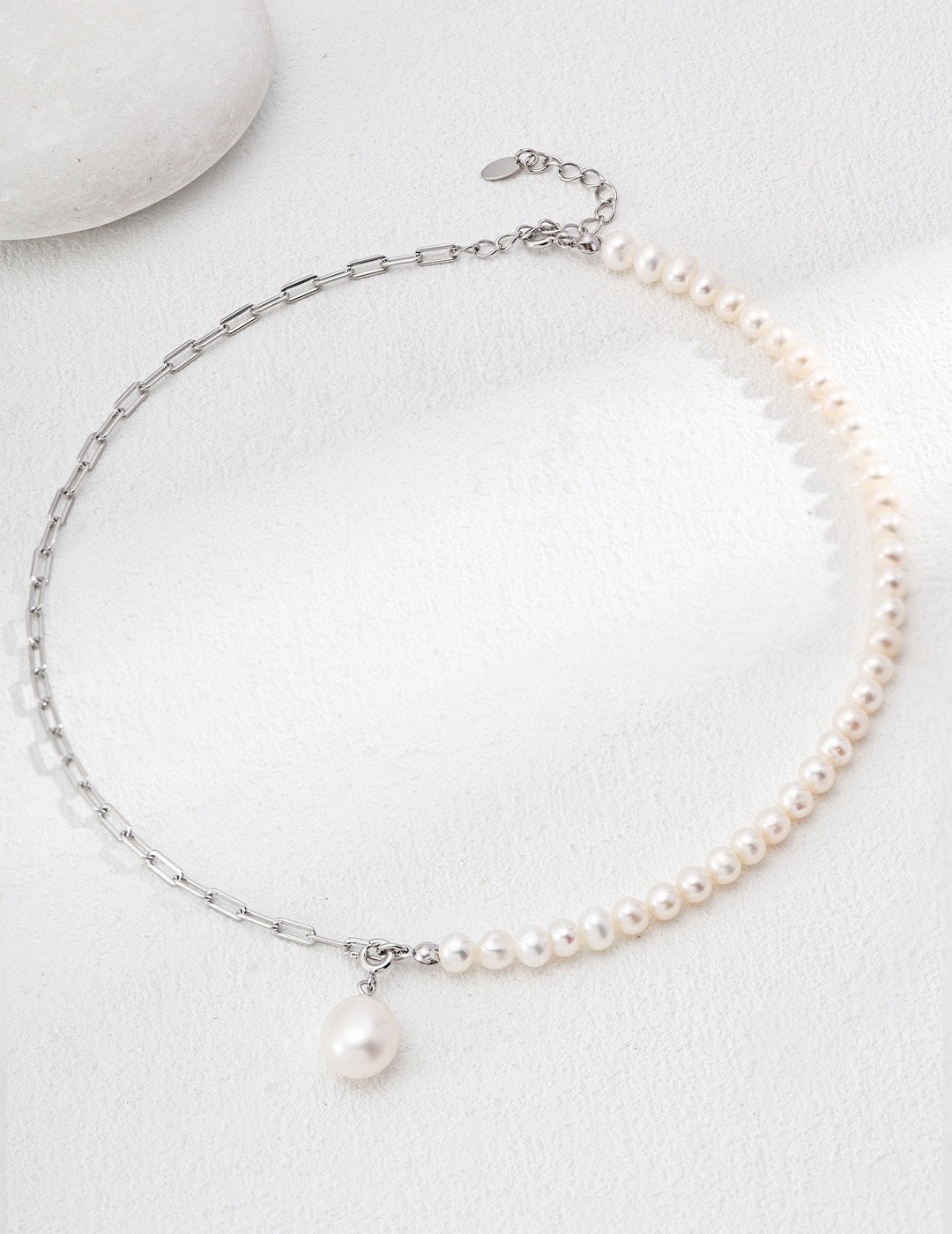 Discover timeless elegance with our Minimalist French Natural Baroque Pearl Necklace. Embracing centuries of artistry, the asymmetrical design adds a modern twist to the beloved Renaissance motif. Made with S925 Sterling Silver and exquisite natural pearls, this necklace captures a sense of fluid elegance that effortlessly elevates any contemporary style. Available in White Gold Tone and Vintage Gold Tone.